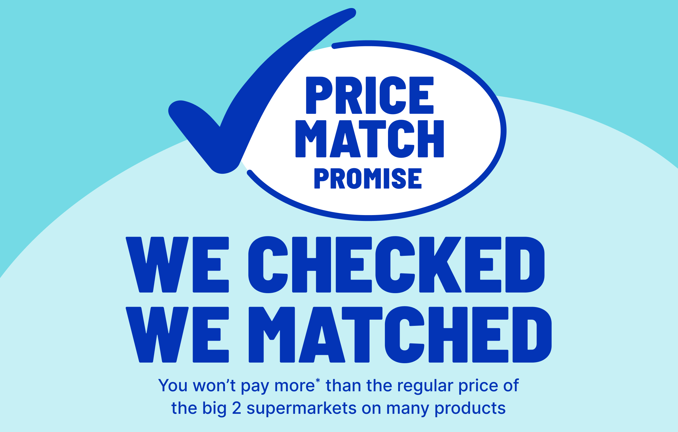 *Available at participating stores. Prices of selected products that are regularly purchased by our shoppers are checked and matched weekly to the lower of the Woolworths or Coles everyday shelf price. Excludes promotions & specials. Not all price match products are available at all participating stores.