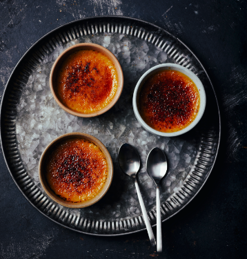 Sprinkle each custard with a thin, even layer of sugar. Use a blowtorch to caramelise. Repeat if you prefer a thicker caramel crust. Serve immediately.